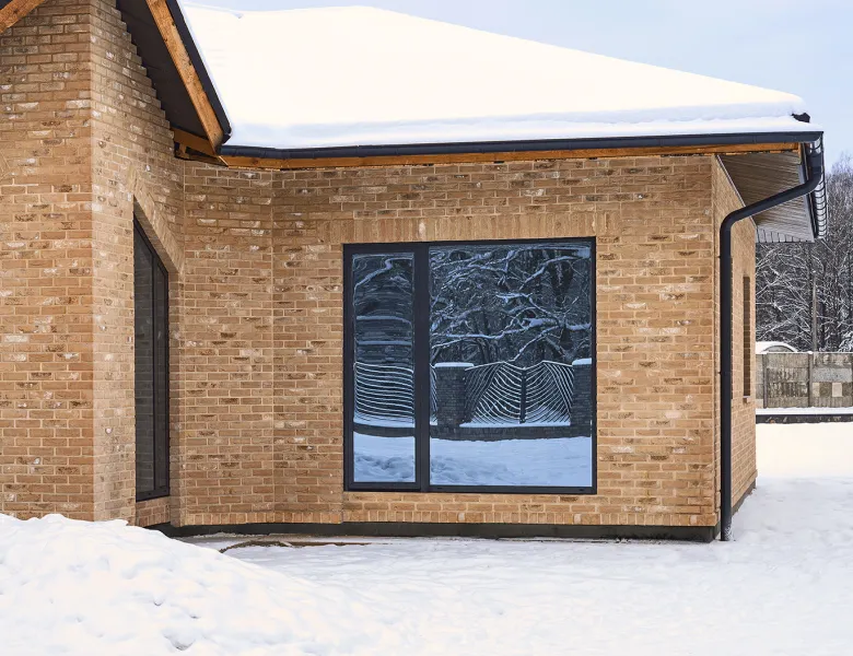 Почти незаметные в экстерьере роллеты со скрытым коробом позволяют управлять световым потоком: ночью затемняют комнаты, утром впускают в них бодрящий свет солнца. Защищают дом от шума, а остекление — от механических повреждений и осадков.