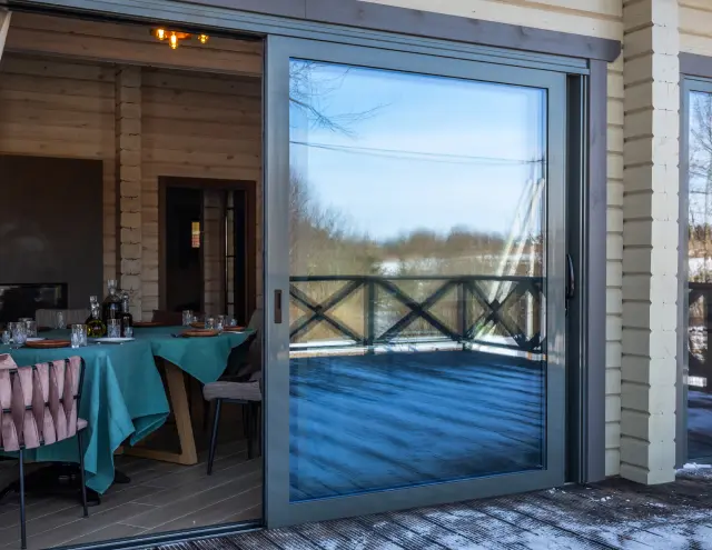 Мы получили проект дома на расчет и предложили несколько вариантов остекления, из них заказчик выбрал оптимальный по стоимости. Сегодня здесь установлены глухие витражи на основе системы ALT W72 и раздвижная стеклянная дверь ALT SL160, которая делает выход на террасу удобным.