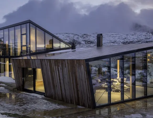 Основным пожеланием заказчика было установить остекление большой площади. И при этом минимизировать теплопотери в холодное время года. В проекте применялось структурное остекление ALT F50 SG с интегрированными фасадными окнами ALT F50 и подъемно-раздвижной конструкцией ALT SL160.