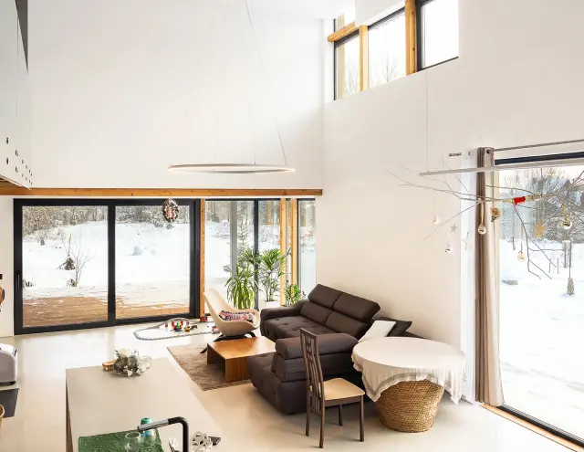 Заказчик обратился к нам за комплексным остеклением для своего загородного дома. Мы рассмотрели несколько вариантов и остановились на оконной системе ALT W72 W, дверной системе ALT W72 D и портальных раздвижных дверях из профиля ALT SL160.