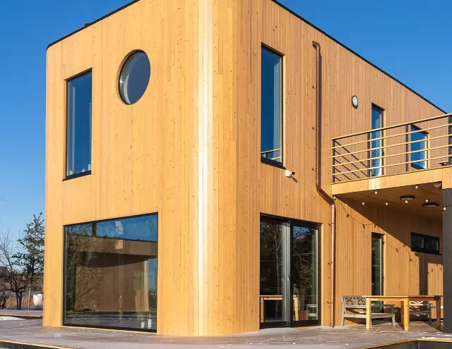 Владелец дома обратился к нам за комплексным остеклением. С учетом особенностей проекта мы выбрали окна и двери ALT W72, а также HS-портал ALT SL160.