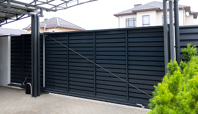 Откатные ворота выглядят современно, легко автоматизируются и не требуют особого ухода.