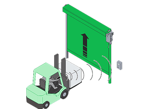Новинка для производственных и торговых объектов — автоматические скоростные ворота. Они позволяют быстро перемещаться между помещениями. Скорость открытия: 2 м/с.